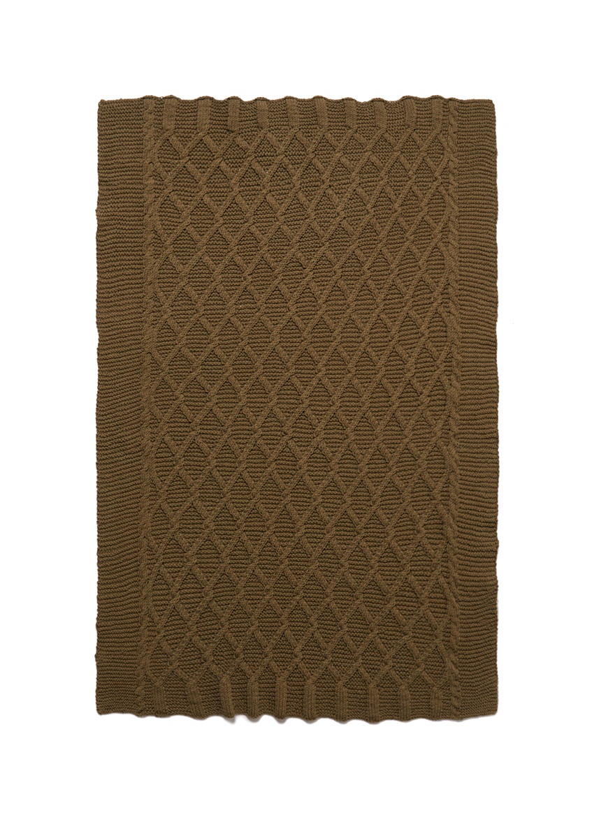 Lana Grossa-Qualität „Elastico“ (96 % Baumwolle, 4 % Polyester (Elité); Lauflänge = 160 m/50 g): 300 g Grünbraun (Fb 175); Rundstricknadel 4 mm; Zopfnadel.
