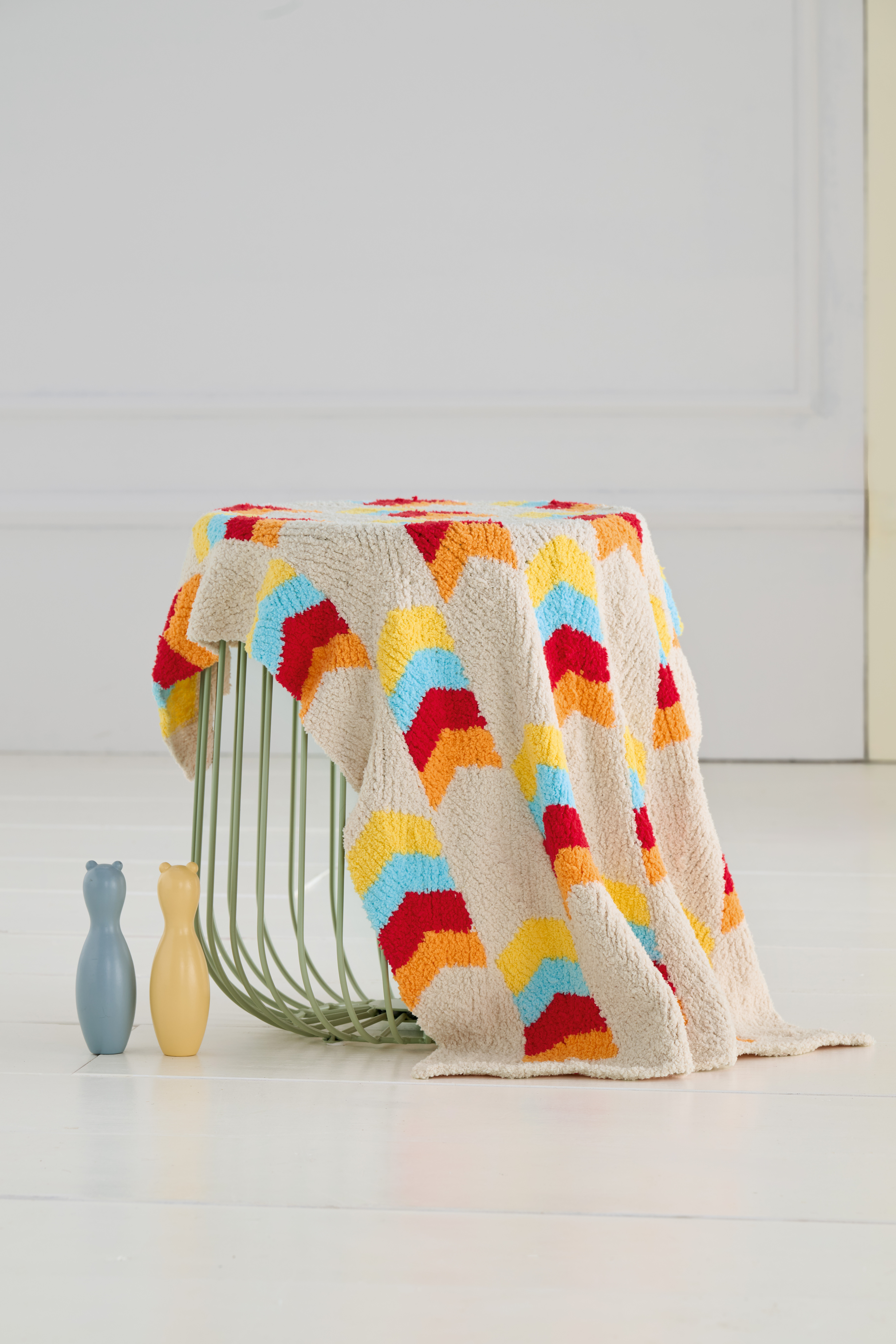 Lana Grossa Leggerissimo (100% Polyamid (rec.); LL = 150 m/50 g): 100 g Beige (Fb. 16) und je 50 g Orange (Fb. 2), Rot (Fb. 4), Türkis (Fb. 10) und Gelb (Fb. 1); eine Rundstricknadel 4,5 mm.