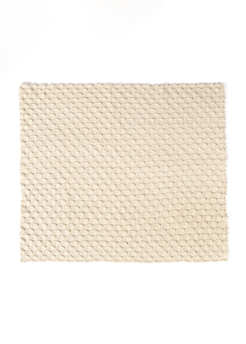 Lana Grossa Summer Cashmere (90% Baumwolle, 10% Kaschmir; LL = 210 m/50 g): 450 g in Creme (Fb. 2); eine Rundstricknadel 4 mm; eine Häkelnadel 3,5 mm.