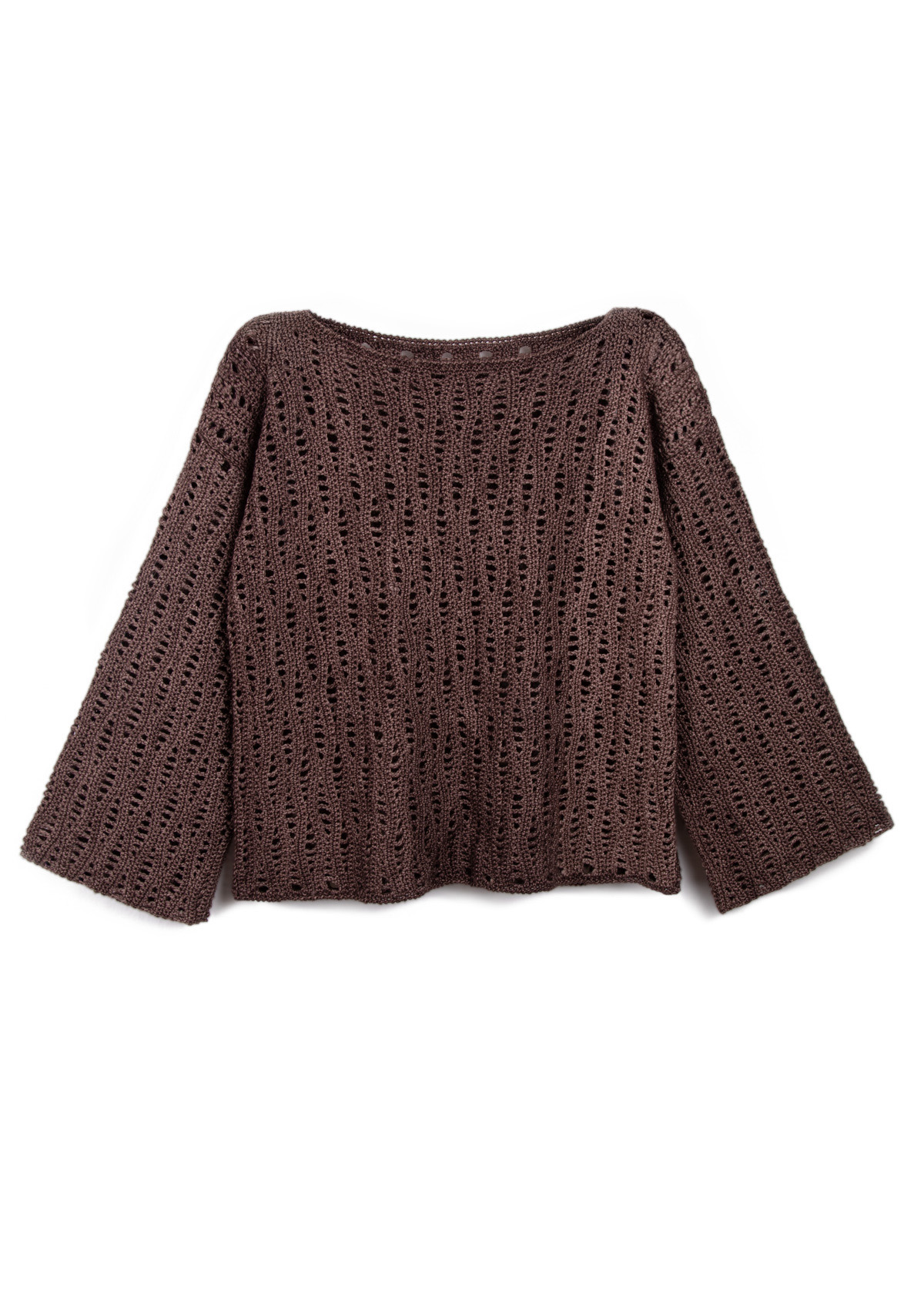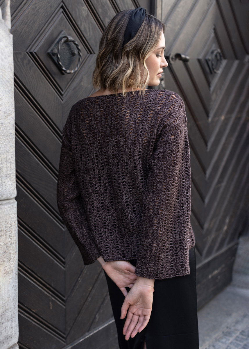 Alle Teile des Pullovers werden quer gehäkelt. Das Modell hat eine Gesamtlänge von 55 (55 - 60 - 60 -65 - 65) cm und eine Brustmehrweite von 8 cm bei 80 cm Brustumfang (12 cm bei 88 cm Brustumfang - 10 cm bei 96 cm Brustumfang - 8 cm bei 104 cm Brustumfang - 10 cm bei 116 cm Brustumfang - 12 cm bei 128 cm Brustumfang).