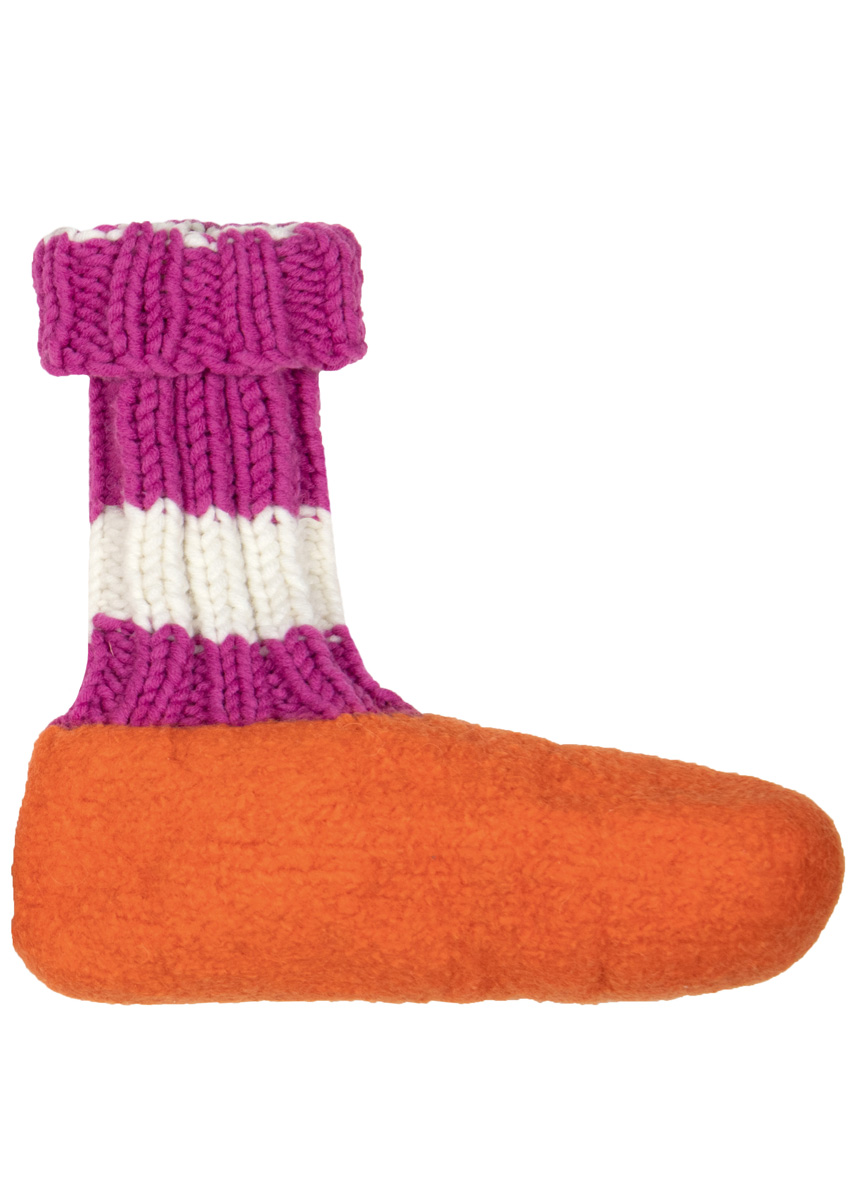 Lana Grossa Feltro (100% Schurwolle; Lauflänge 50 m/50 g); 100 (150 - 200) g Türkisblau (Fb 42) oder Mandarin (Fb 80). Lana Grossa Mille II (50% Schurwolle Merino, 50% Polyacryl; Lauflänge 55 m/50 g), je 50 g in Safrangelb (Fb 130) und Rohweiß (Fb 17) oder je 50 g in Pink (Fb 26) und Rohweiß (Fb 17); Nadelspiel Nr. 7 und 5.
