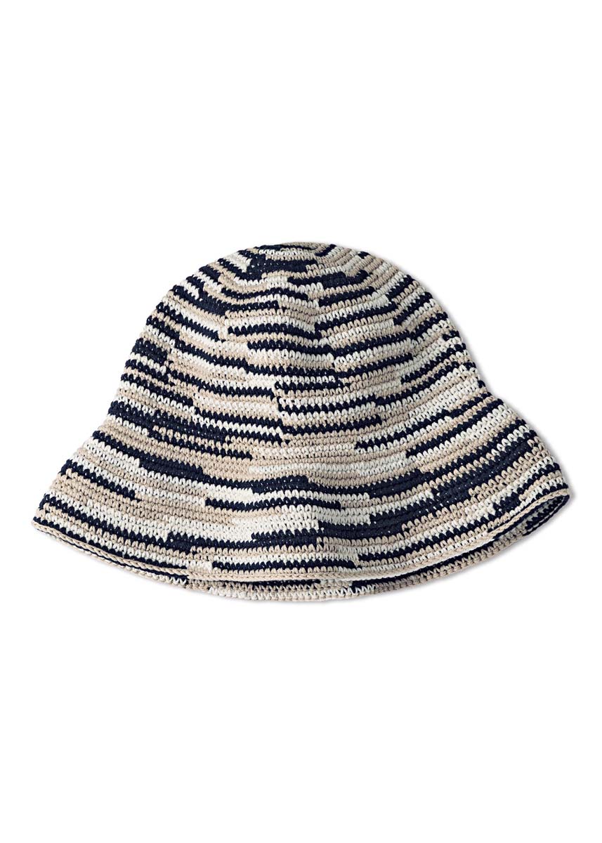 Lana Grossa-Qualität „Elastico” (96 % Baumwolle, 4 % Polyester (Elité), LL = ca. 160 m/50 g): je ca. 50 g Nachtblau (Fb. 12), Beige (Fb. 97) und Ecru (Fb. 36); 1 Wollhäkelnadel Nr. 3,5. Fe M: In Spiral-Rd häkeln. Dafür am Rd-Übergang keine Luftm arb. und die Rd nicht mit 1 Kettm schließen, sondern spiralförmig über den Rd-Übergang hinweg häkeln. Da es keinen sichtbaren Übergang gibt, den Rd-Beginn markieren.