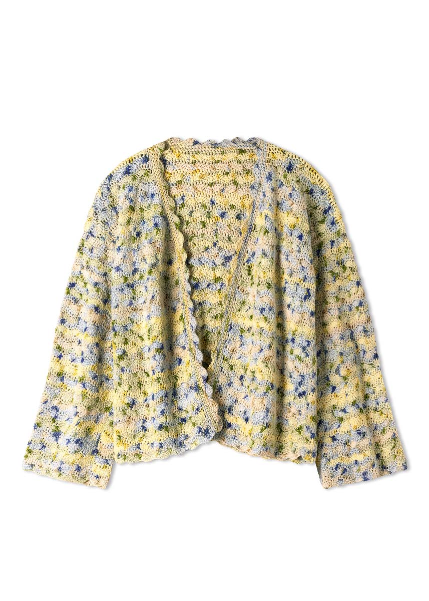 Twin-Sets sind DIE Antwort auf wechselhafte Wetterlagen. Hier unsere Sommervariante, die im Muschelmuster gehäkelt wird. Jacke und Top haben einen tiefen V-Ausschnitt, Stäbchenbögen umgarnen die Ränder.