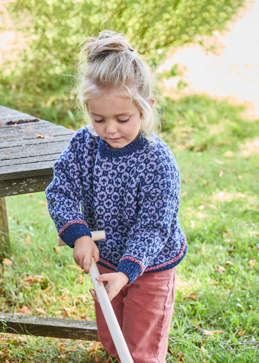 Lana Grossa-Qualität „Landlust- Soft-Tweed 180“ (100 % Schurwolle (Merino), LL ca. 180 m/50 g) 100 g (150 g - 150 g) in Dunkelblau Meliert (Fb 114), 100 g (100 g - 150 g) in Graublau Meliert (Fb 126) und 50 g in Rot Meliert (Fb 111); je 1 Rundstricknadel Nr. 3,5 und Nr. 4,5, je 1 Nadelspiel Nr. 3,5 und Nr. 4,5, 1 Maschenmarkierer (MM).