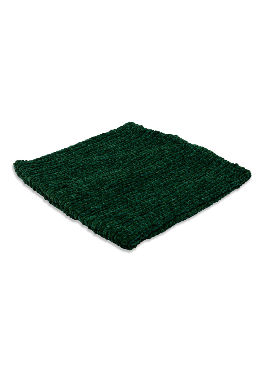 Lana Grossa-Qualität „The Look” (100 % Polyester, LL = ca. 120 m/100 g): Kissenhülle A: ca. 100 g Flaschengrün (Fb. 15) und Lana Grossa-Qualität „The Look Fine” (100 % Polyester, LL = ca. 100 m/50 g): Kissenhülle A: ca. 100 g Flaschengrün (Fb. 121); Stricknadeln Nr. 6; 1 waschbare Kissenfüllung, 40 x 40 cm.