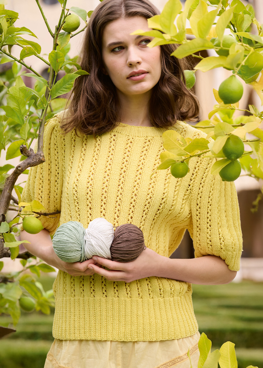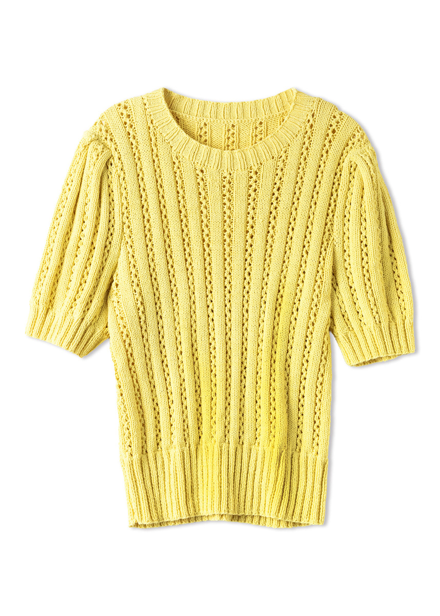 In Falten gelegte Puffärmel, ein feines Ajour-Rippenmuster und zartes Vanillegelb: Kann man Romantik schöner buchstabieren?