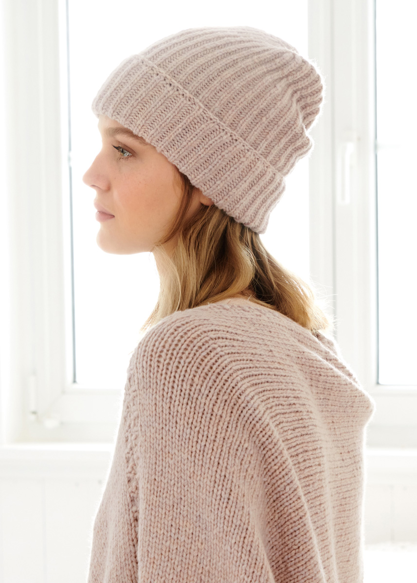 „Alta Moda Cashmere 16“ von Lana Grossa 78 % Schurwolle (Merino), 12 % Kaschmir, 10 % Polyamid Lauflänge = circa 110 Meter/50 Gramm, circa 100 Gramm Beigerosa (Farbnummer 23), 1 kurze Rundstricknadel Nummer 3,5, Länge 40–50 cm, 1 Nadelspiel Nummer 3,5