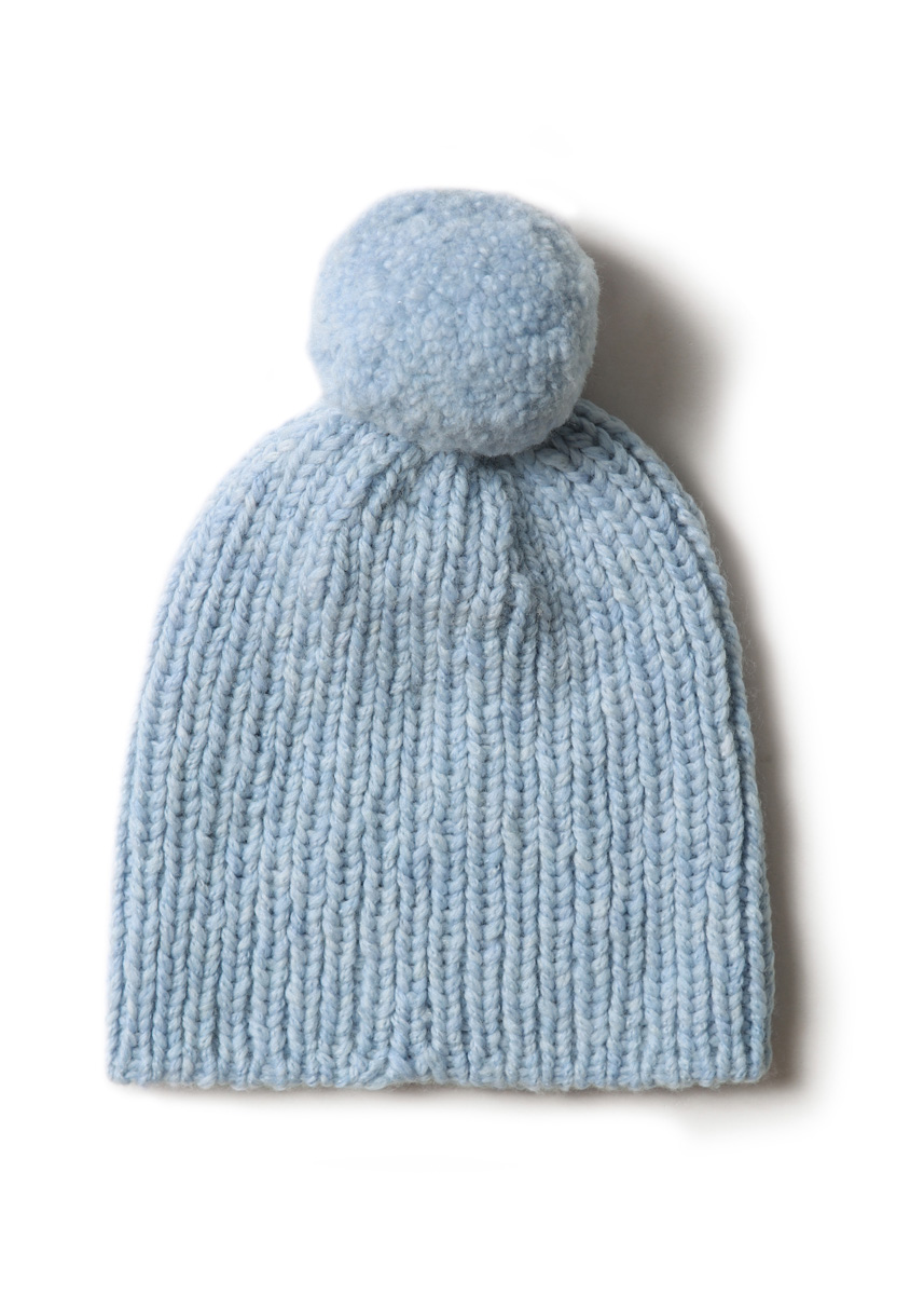 Lana Grossa Cool Merino Big (90 % Schurwolle (Merino), 10 % Polyamid, Lauflänge = 90 m/50 g): 100 g Hellblau (Fb 208); Nadelspiel Nr. 4; Lana Grossa Pompon-Set.