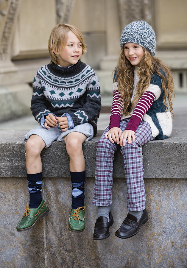 Lana Grossa Qualität „Garzato Fleece“ (70% (Baby) Alpaka, 30% Polyamid, LL = 225 m/50 g), je ca. 50 g Petrol/Schwarz (Fb 2) und Rohweiß/ Natur (Fb 12), 1 Spiel Stricknadeln Nr. 6 und 8.
