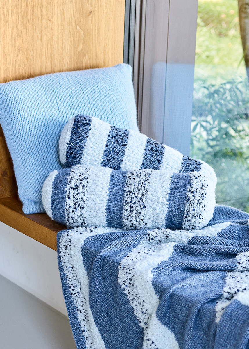 LL = ca. 260 m/100 g): ca. 100 g Nachtblau (Fb. 19); 1 Wollhäkelnadel Nr. 4, Stricknadeln Nr. 5; 1 Nackenrolle, 40 x 15 cm ø.