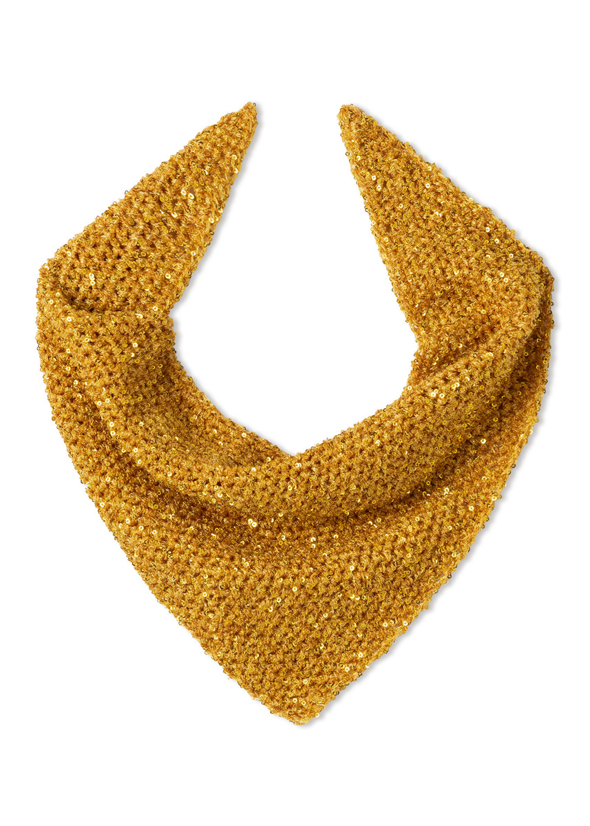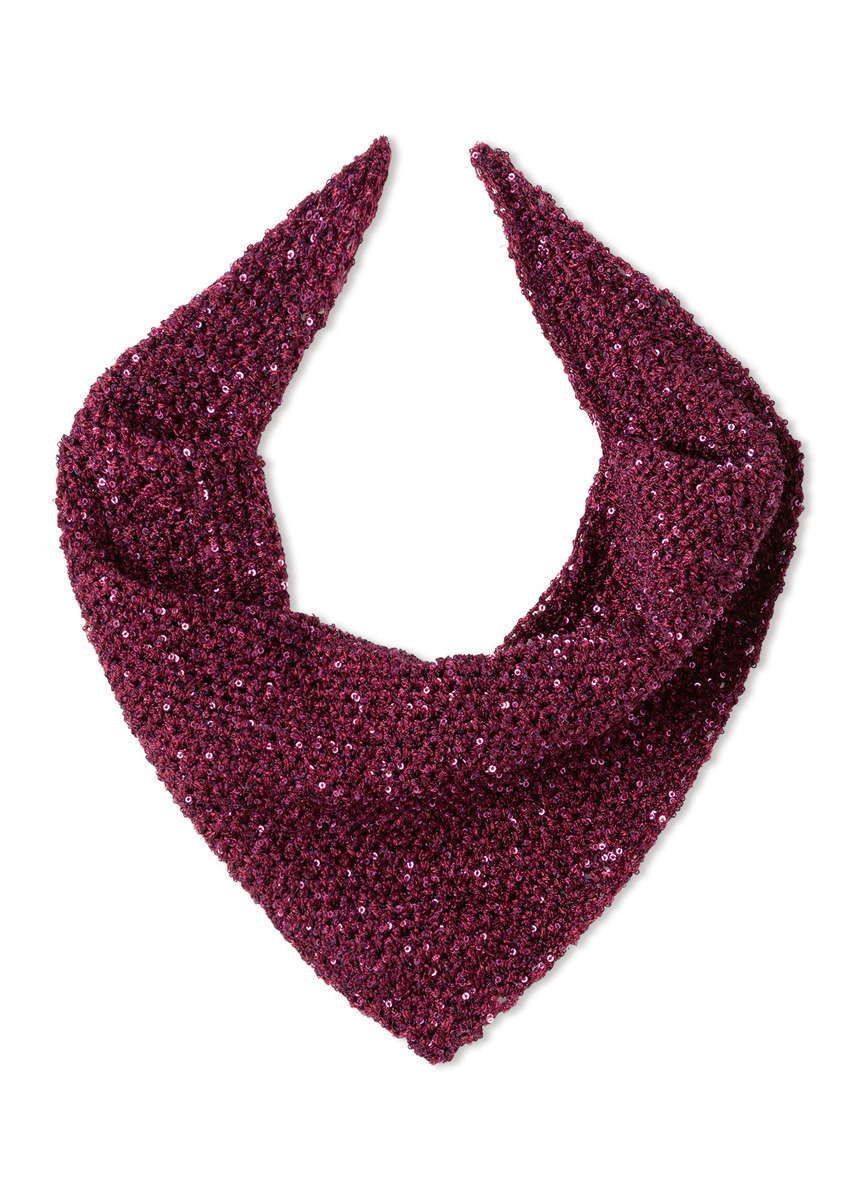 Lana Grossa-Qualität „Glamour“ (55 % Polyamid, 45 % Polyester, LL = ca 115 m/25 g): ca 75 g Bordeaux (Fb 9) oder Beige (Fb 10) oder Goldgelb (Fb 18); Häkelnadel Nr 3,5.