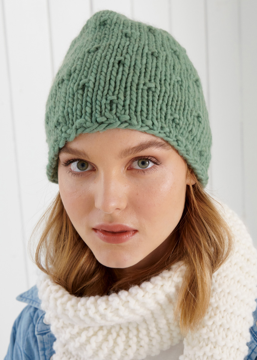„Per Lei“ von Lana Grossa 100 % Schurwolle (Merino) Lauflänge = circa 60 Meter/50 Gramm, circa 100 Gramm Mint (Farbnummer 4), 1 Nadelspiel oder 1 kurze Rundstricknadel Nummer 8, Länge 40–50 cm, 1 Maschenmarkierer