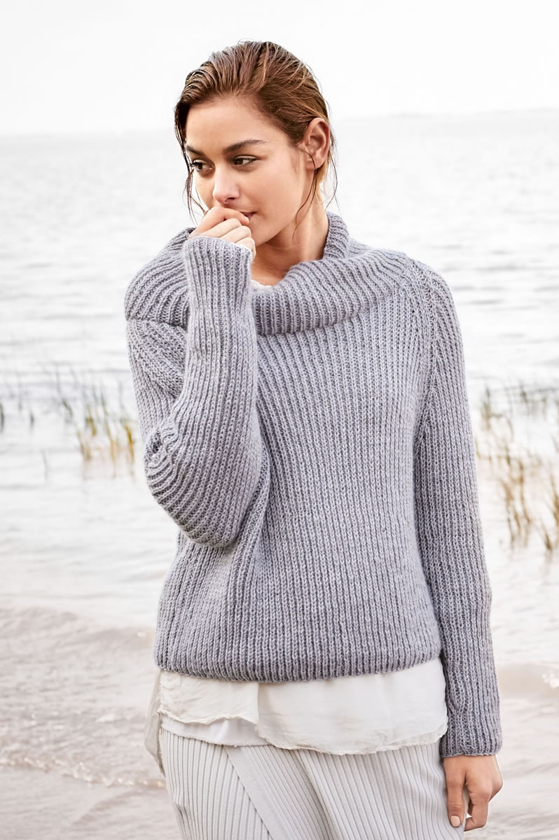 Lana Grossa Cool Wool Cashmere (90 % Schurwolle, 10 % Kaschmir, Lauflänge 160 m/50 g) 450 (500-550) g Hellgrau meliert (Fb 13); Stricknadeln Nr. 4, eine 40 cm lange Rundstricknadel Nr. 4