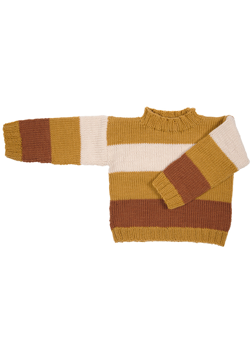 Lana Grossa Cool Wool (100 % Schurwolle (Merino)), Lauflänge 160 m/50 g) 50 (100/100) g Honiggelb (Fb 2035), 50 g Karamell (Fb 2054) und 50 g Vanille (Fb 411); Stricknadeln Nr. 4, eine 40 cm lange Rundstricknadel Nr. 4.
