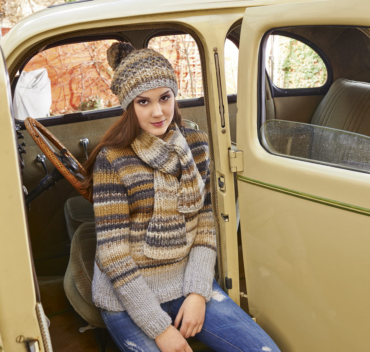 Lana Grossa-Qualität „Lei colormix“ (100 % Schurwolle (Merino), Lauflänge ca. 40 m/50 g): ca. 200 (250 – 300) g Taupe/Rohweiß/Hellgrau (Fb. 256) und ca. 250 (300 – 350) g Anthrazit/Grège/Umbra (Fb. 156) und Lana Grossa-Qualität „Lei“ (100 % Schurwolle (Merino), Lauf- länge ca. 40 m/50 g): ca. 150 (200 – 250) g Hellgrau/Natur meliert (Fb. 34); Strick- nadeln Nr. 8 und 9, 1 Wollhäkelnadel Nr. 8.