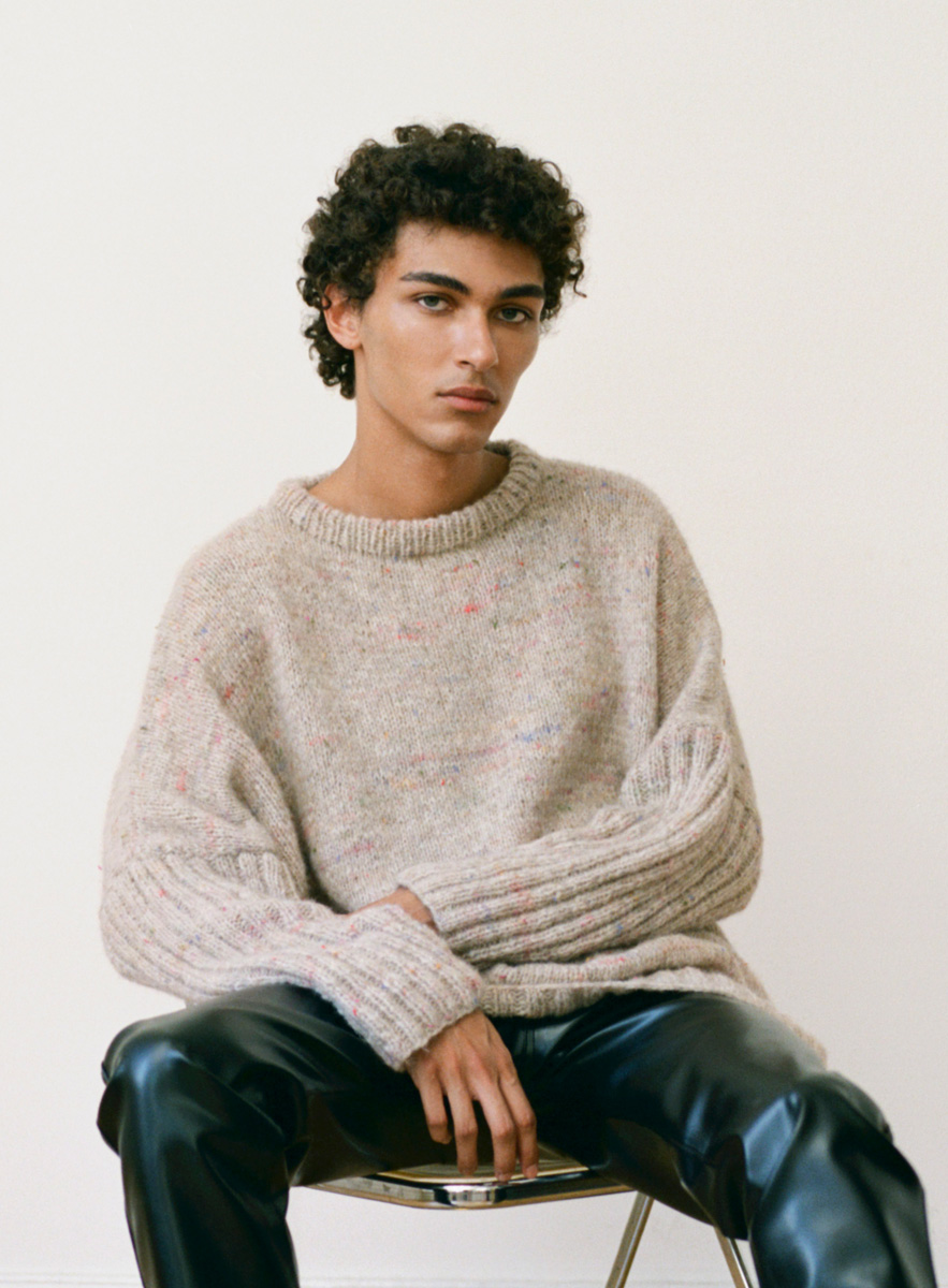 Lana Grossa Lala Berlin Lovely Fine Tweed (37 % Alpaka, 35 % Polyamid, 26 % Schurwolle, 2 % Viskose, Lauflänge 175 m / 50 g) 400 (450 – 500) g Beige (Fb 102); Stricknadeln Nr. 4 und 5, eine 40 cm lange Rundstricknadel Nr. 4.
