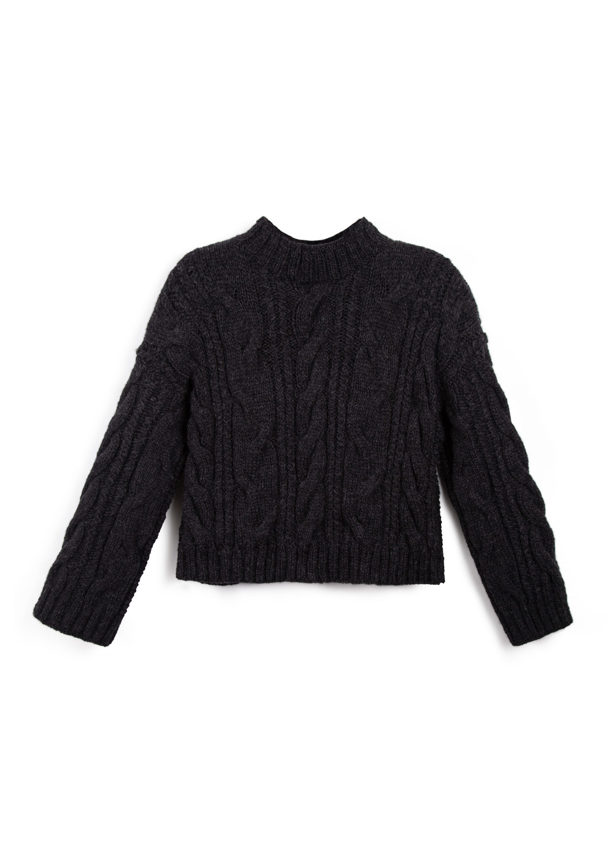 Der Pullover besteht aus drei verschiedenen Zopfmustern, die in jeder Größe unterschiedlich angeordnet sind. In den Größen 32/34, 36/38, 40/42 und 52/54 sind die Muster wie beim anthrazitfarbenen Pulli angeordnet und in den Größen 44/46 und 48/50 wie beim naturfarbenen Modell.