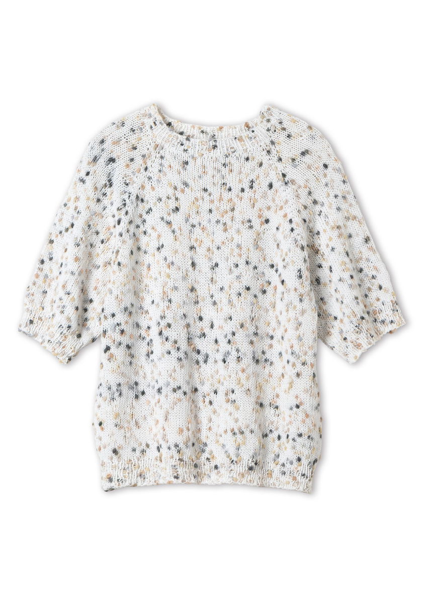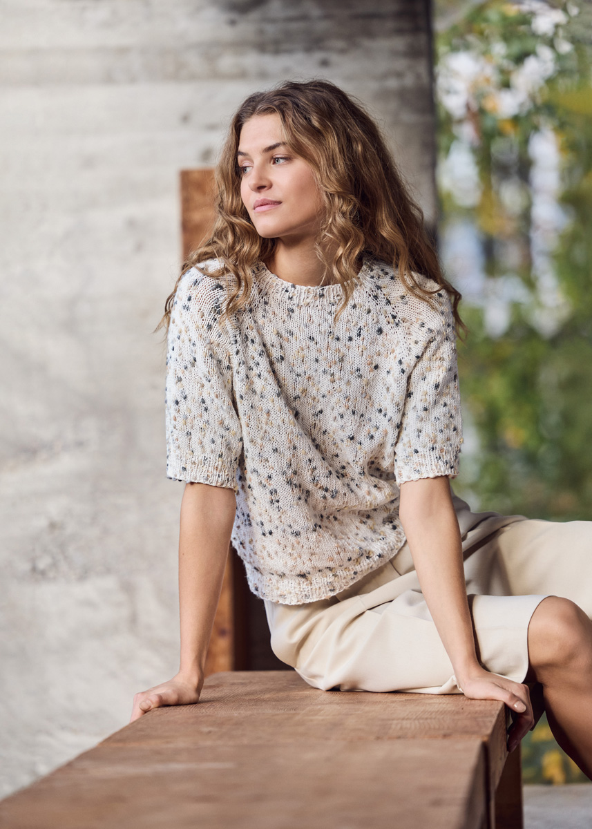 Lana Grossa-Qualität „Popcorn“ (100 % Baumwolle, LL = ca 125 m/50 g): ca 300 (350 - 400 - 450) g Weiß/Beige/Camel/ Grau/Anthrazit (Fb 9); kurze und lange Rundstricknadel Nr 4,5 und Nr 5; Nadelspiel Nr 4,5 und Nr 5; Maschenmarkierer.