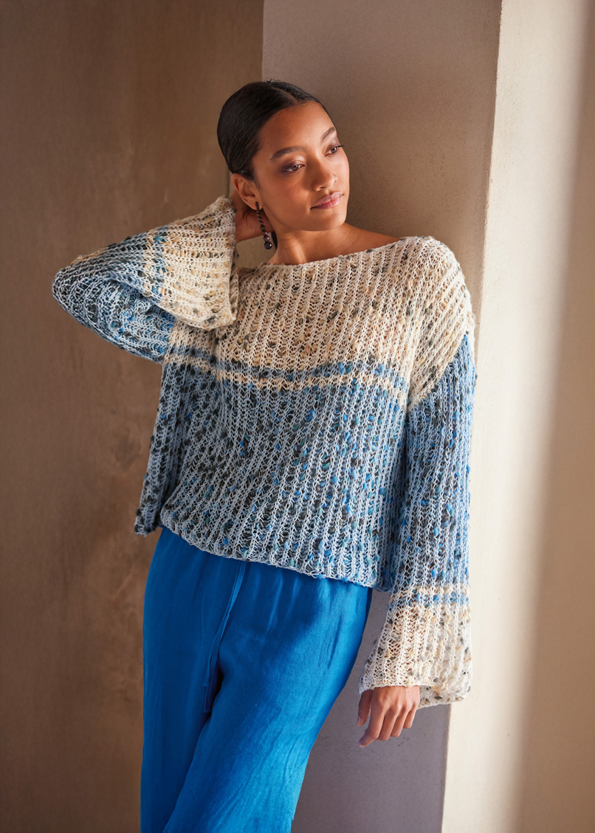 Principianti (klingt irgendwie cooler als „Anfänger“) aufgepasst! Die frechen Noppen und das plastische Patentmuster spielen eindeutig die Hauptrolle bei diesem entspannt lockeren PULLOVER. Angesetzte Ärmel und der gerade U-Boot-Ausschnitt kommen ohne Zu- und Abnahmen aus.