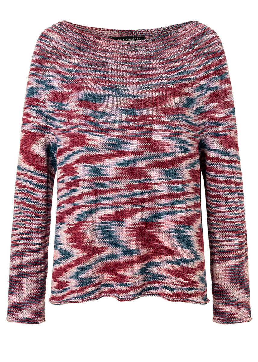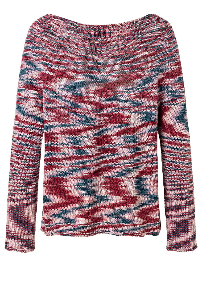 Lana Grossa Setacotone hand-dyed (50% Seide, 50% Baumwolle, Lauflänge 340 m/100 g), 300 (400 – 400) g Dal (Fb. 907); je 1 Rundstricknadel Nr. 4, 40, 60 und 80 cm lang und 1 Spiel Stricknadeln Nr. 4.