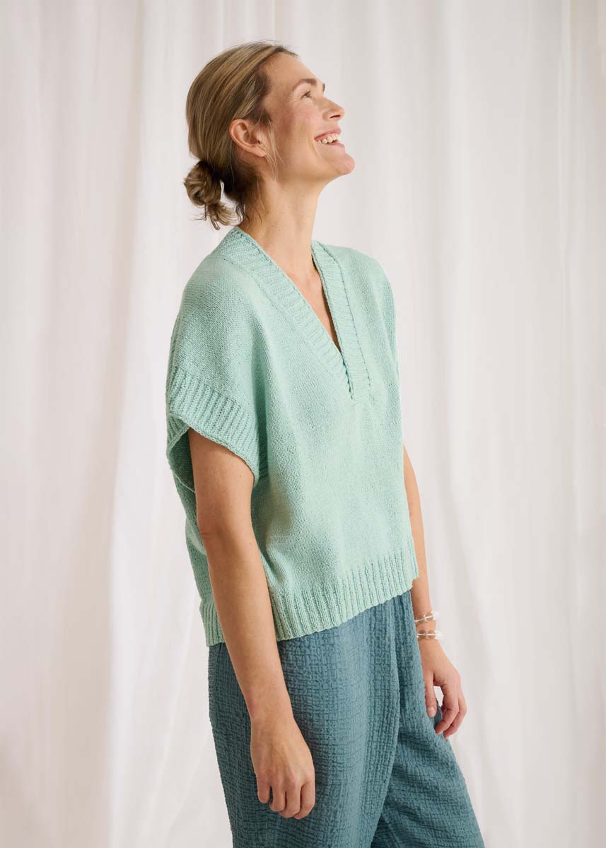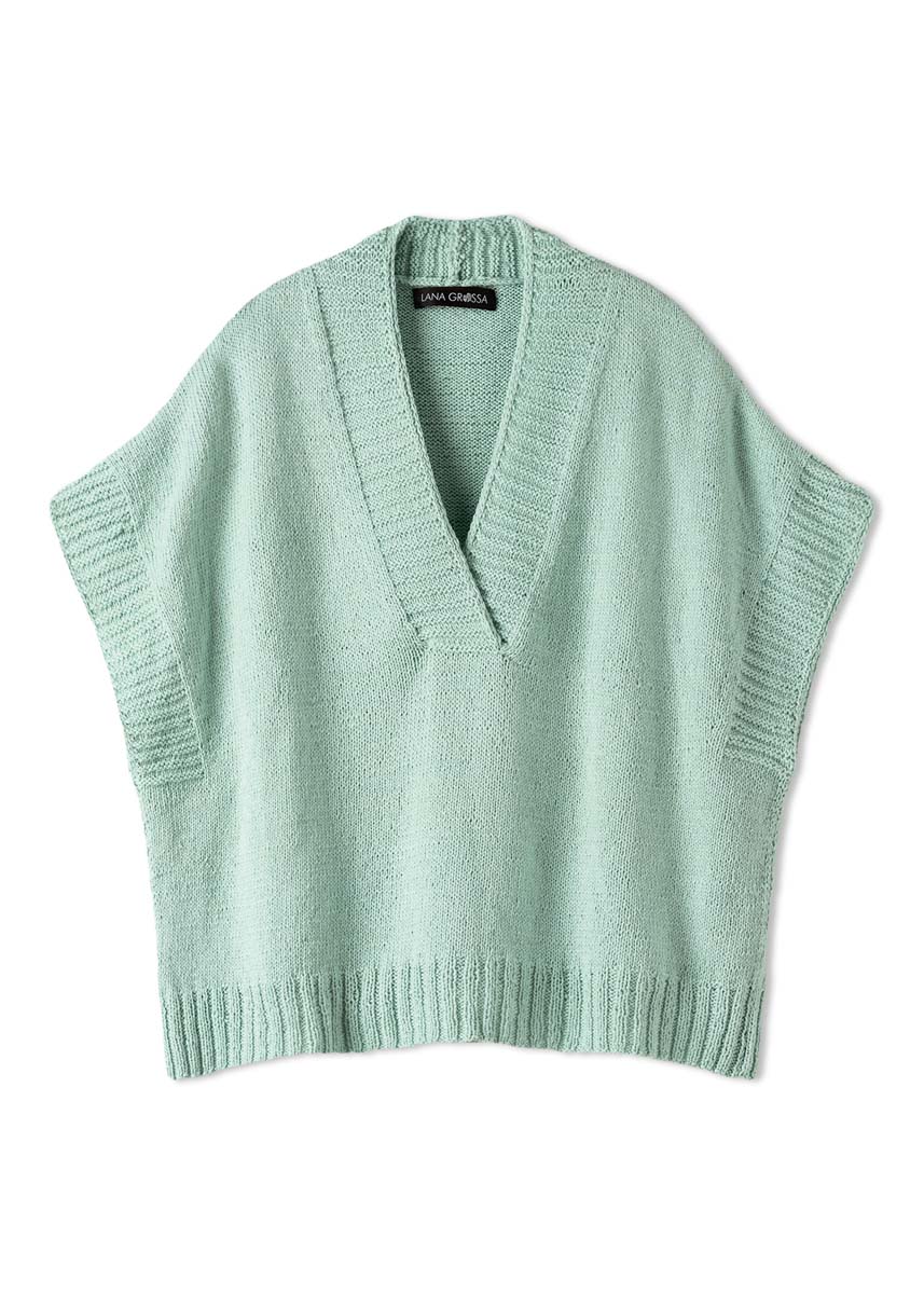 Lana Grossa Summer Cashmere (90% Baumwolle, 10% Kaschmir, Lauflänge 210 m/50 g), 300 (350 – 400 – 450) g Mint (Fb. 12); Stricknadeln Nr. 2,5 und 3.