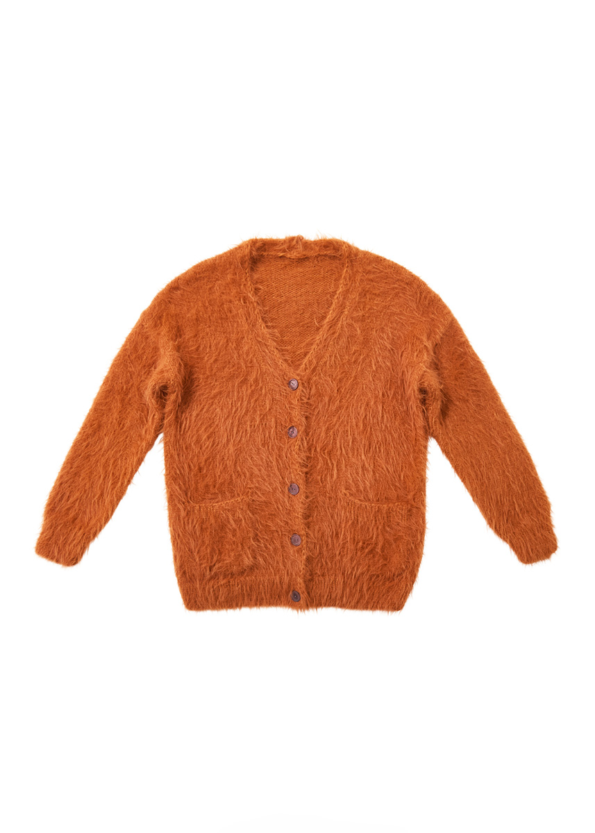 Puscheljacke und Puschelpullover aus Flauschgarn ergeben ein ultraweiches Twinset.