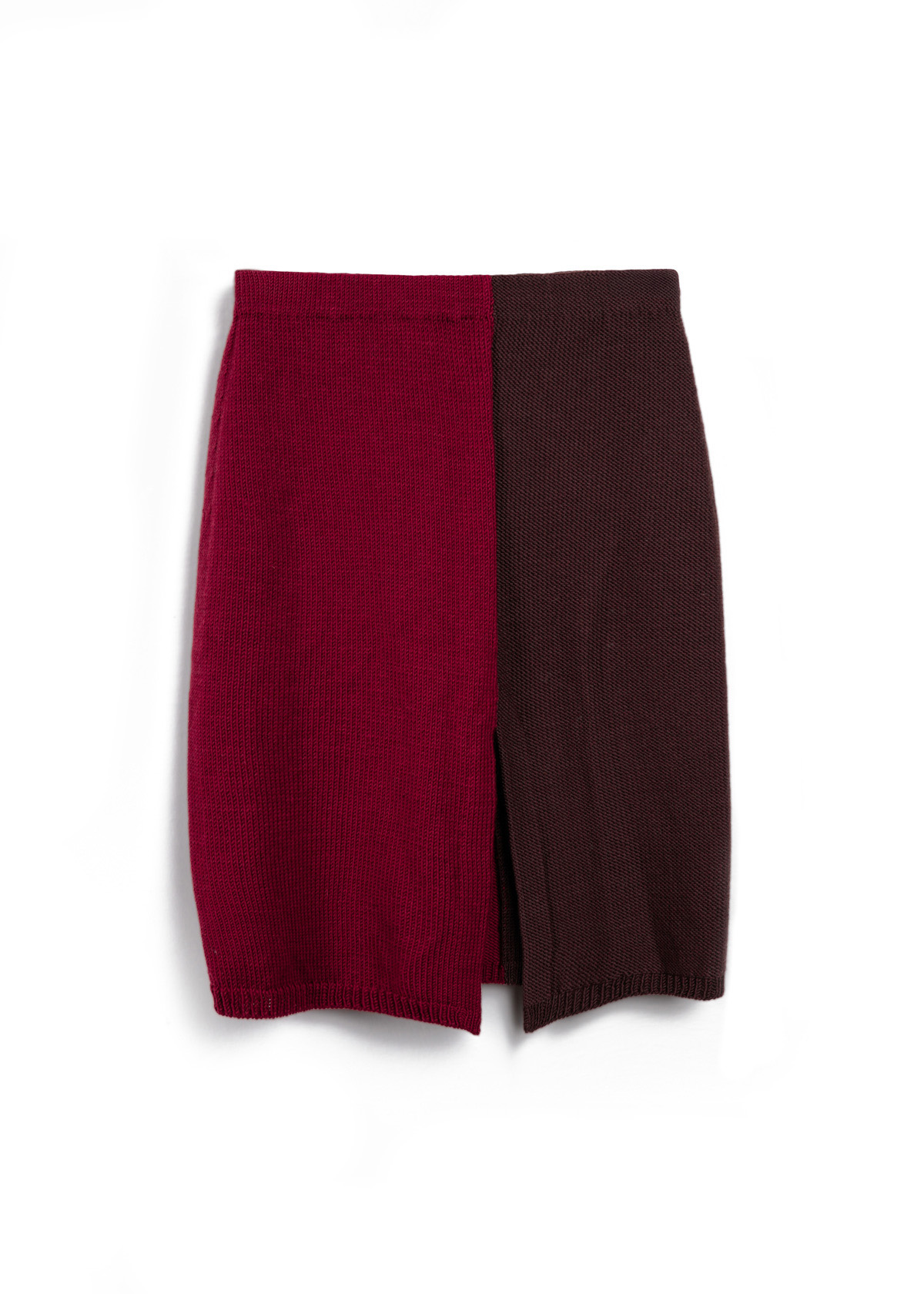 Das Modell hat eine Gesamtlänge von 58 (60 - 62 - 64 - 68 - 68) cm, einen Taillenumfang von 62 (70 - 78 - 86 - 98 - 110) cm und einen Hüftumfang von 87 (94 - 102 - 110 - 122 - 134) cm. Der Rock wird in Reihen von unten nach oben gestrickt und am Ende über dem Schlitz zusammengenäht.