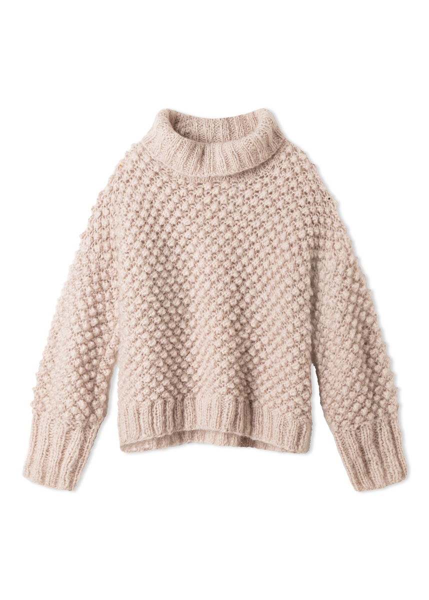 Lana Grossa-Qualität „Mohair Moda” (70 % Mohair (Kid Mohair), 20 % Schurwolle (Merino superfine), 10 % Polyamid, LL = ca. 140 m/50 g): ca. 600 (650 – 700) g Beige (Fb. 11); Stricknadeln Nr. 7 und 10, je 1 Rundstricknadel Nr. 7 und 10, 60 cm lang, Spielstricknadeln Nr. 7.