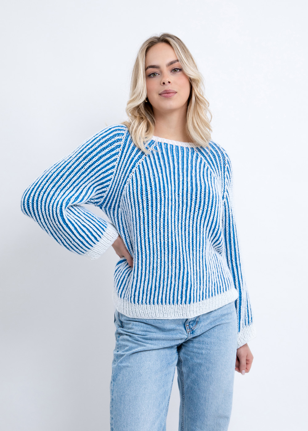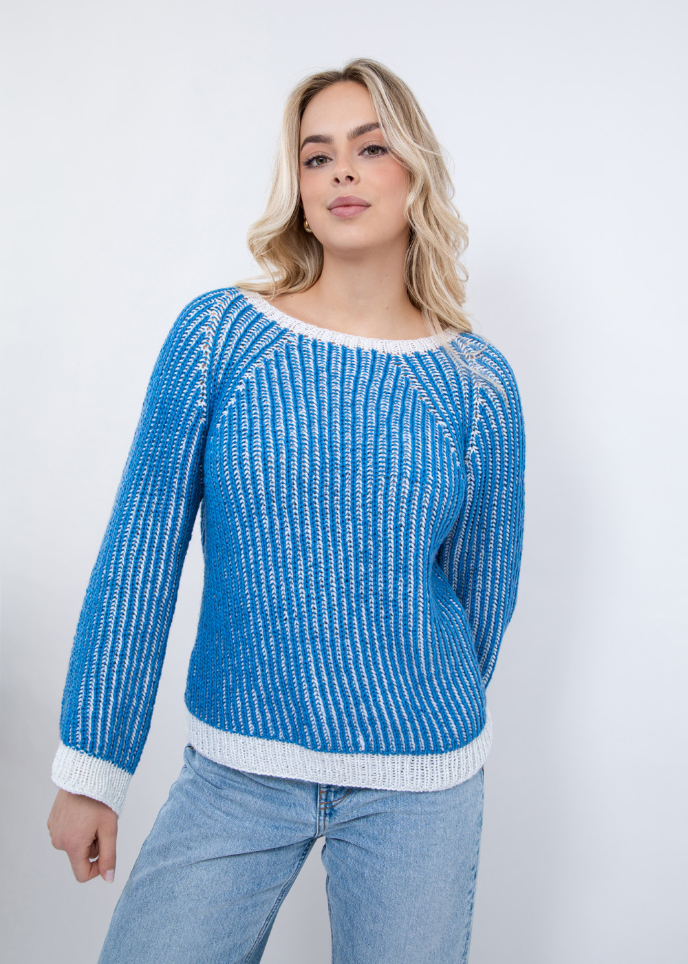 Gestrickt aus dem hochwertigen Garn Summer Softness, begeistert Jana durch seine weiche Haptik und einen hohen Tragekomfort. Das zweifarbige Patentmuster sorgt für eine spannende Optik und macht den Pullover wendbar – je nach Styling kannst du die Farbseite ganz einfach wechseln.