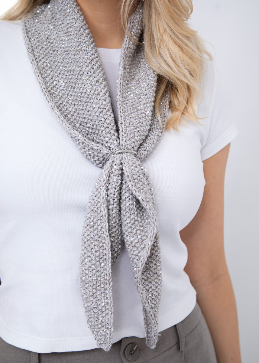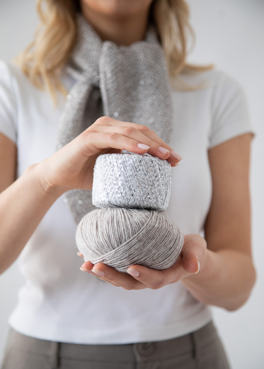 Der Shiny Scarf überzeugt mit einer eleganten Struktur und zeitlosem Design. Gestrickt aus der hochwertigen Garnkombination Ecopuno und Glamour vereint der Schal angenehme Weichheit mit einem eleganten Schimmer. Das feine Perlmuster verleiht dem Schal eine edle, lebendige Oberfläche und sorgt für einen schönen Fall. Dank der zwei verfügbaren Größen lässt sich der Shiny Scarf ganz individuell stylen – ob als zartes Accessoire oder als ausdrucksstarkes Statement-Piece.
