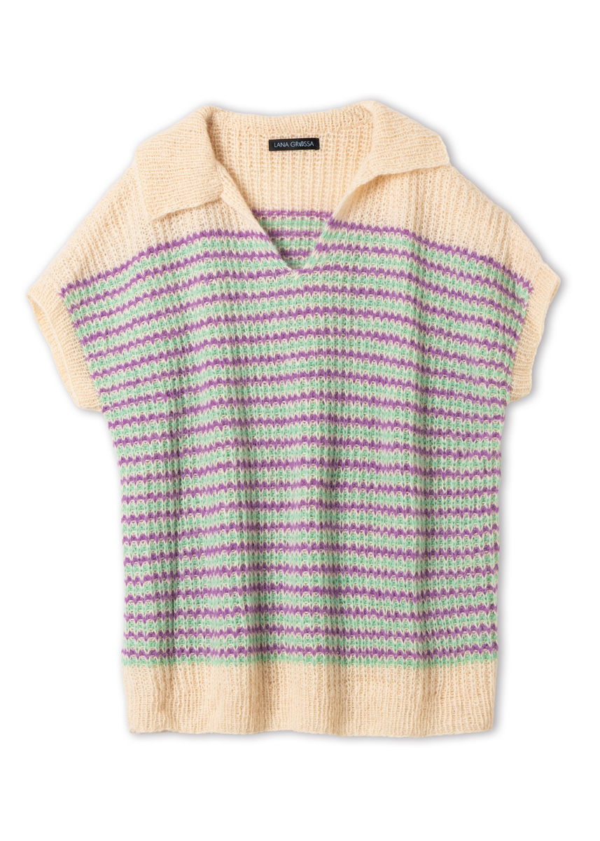 Der Slipover wird stets mit doppeltem Faden in einer Farbe gestrickt.