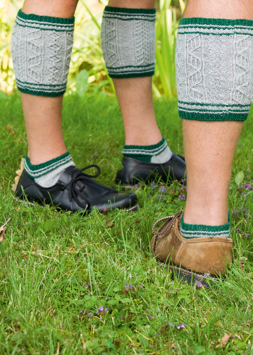 Lana Grossa „Meilenweit 50g“ (80 % Schurwolle, 20 % Polyamid, Lauflänge 210 m/50 g): je 50 g Hellgrau meliert (Fb 1346) und 50 g Flaschengrün (Fb 1367), Nadelspiel Nr. 2,5.