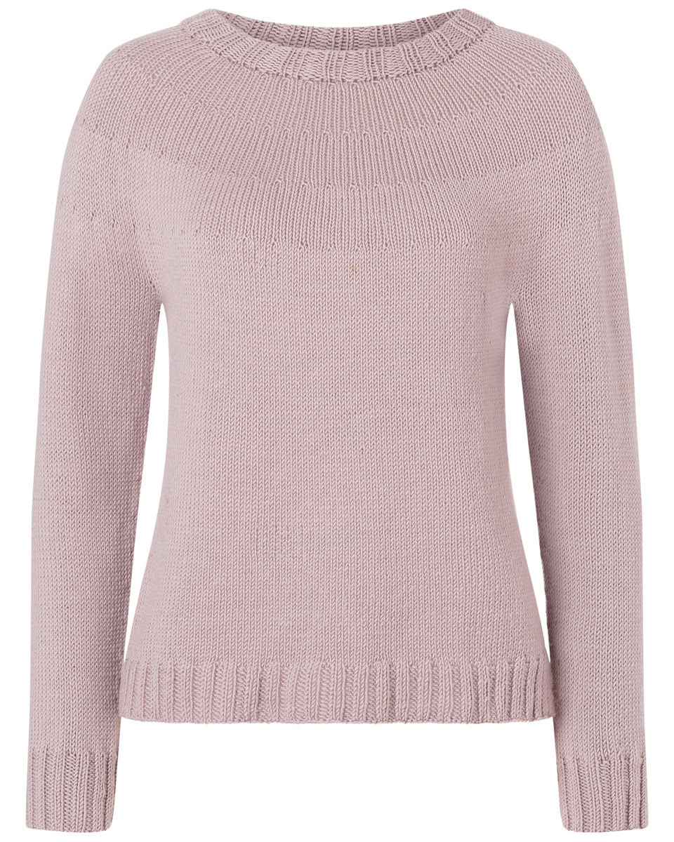 350 (400) 450 (500) 500 (550) 600 (650) g Lana Grossa Cool Wool (100 % Schurwolle (Merino extrafine), Lauflänge 160 m / 50 g) in der Farbe 2010 helles Rosenholz. Nadeln: Rundnadel 3,5 mm, 40 - 50 cm lang; Rundnadeln 4 mm, 40 - 50 und 80 - 100 cm lang; Häkelnadel 3,5 mm.