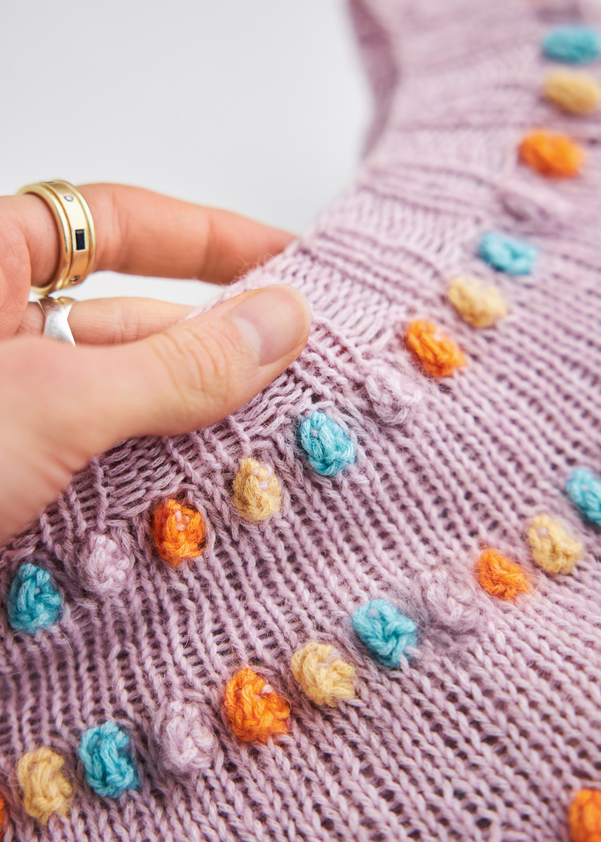 Die süßen Noppen in Softeis-Farben sind die i-Tüpfelchen dieses Entwurfs, aber auch 300 % Meditation! Das bedeutet: Eine gute Portion Geduld ist gefragt. Ich finde, die Mühe lohnt sich!