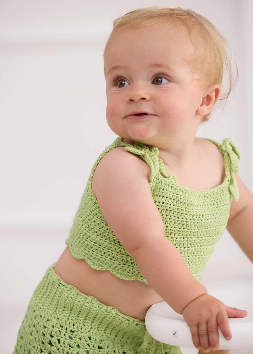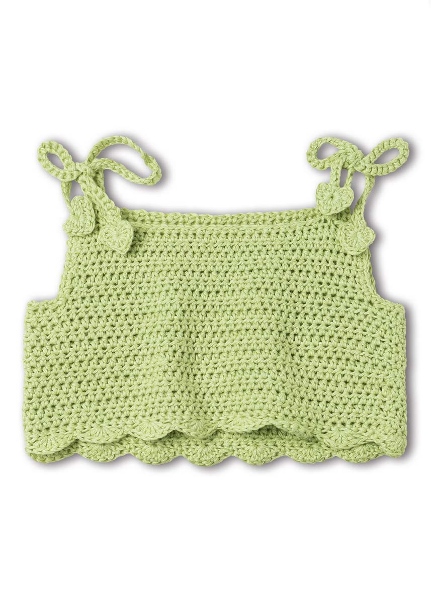 Lana Grossa Campo (65% Baumwolle, 25% Viskose, 10% Leinen; LL = 165 m/50 g): 50 (50/50/100) g Zartgrün (Fb. 10); Häkelnadel 3,5 mm; 2 entfernbare Maschenmarkierer (alternativ Sicherheitsnadeln).