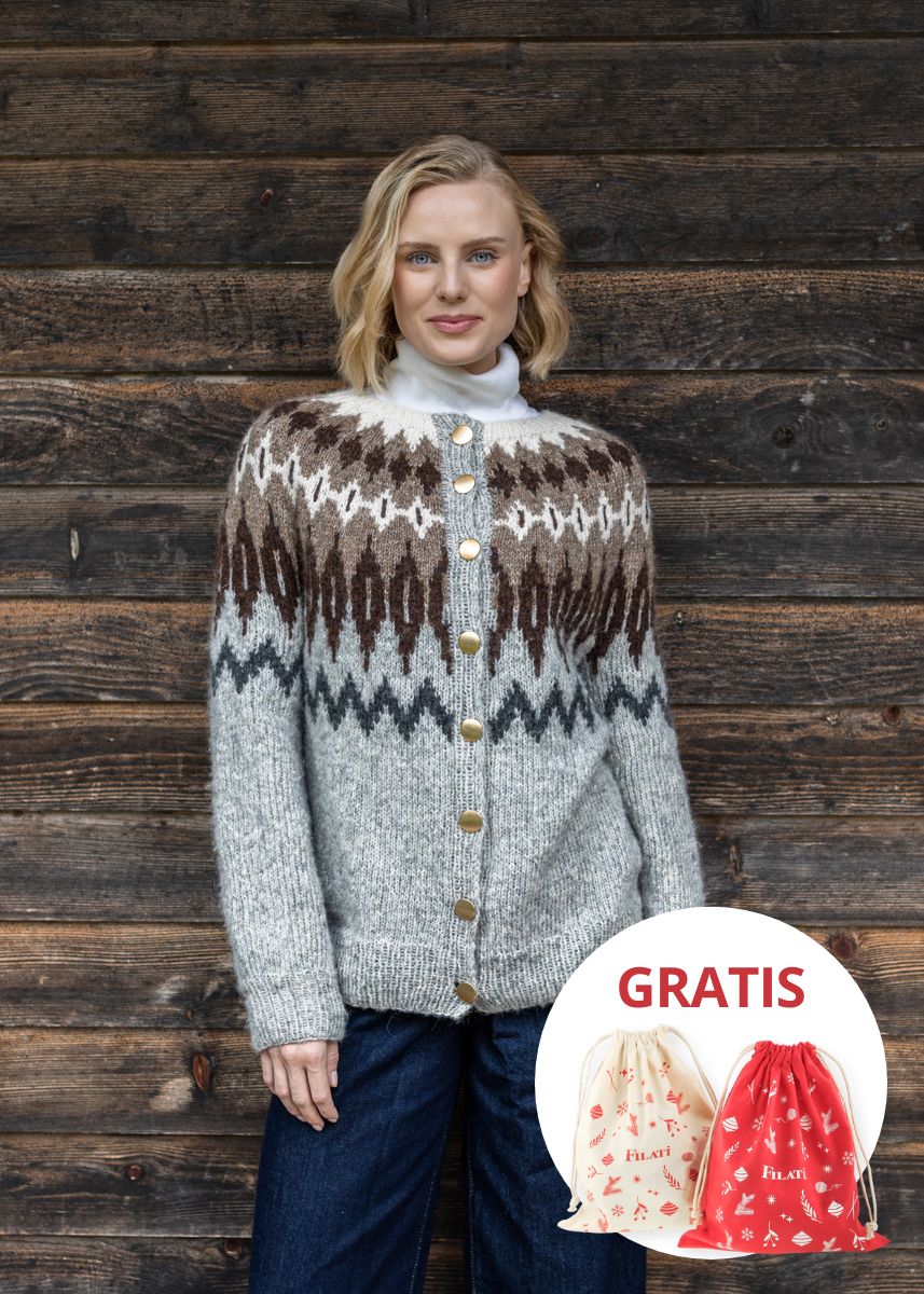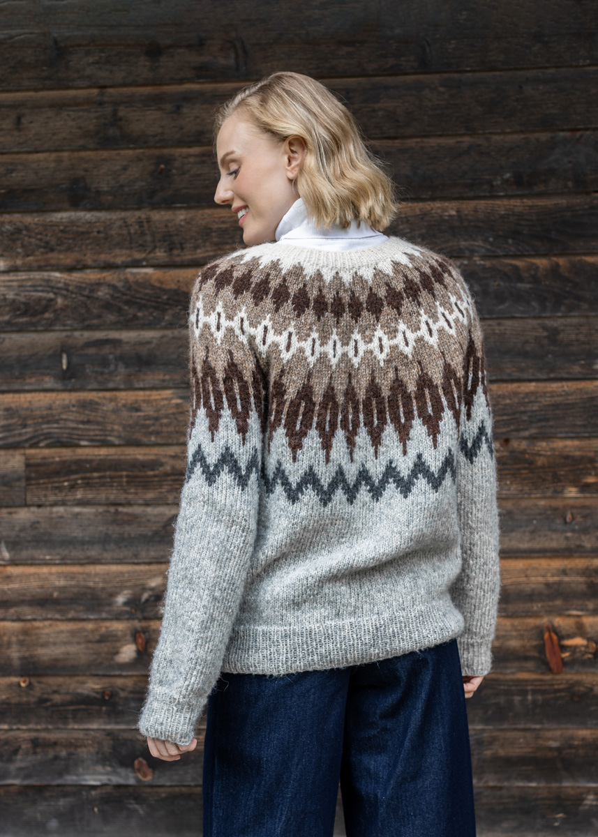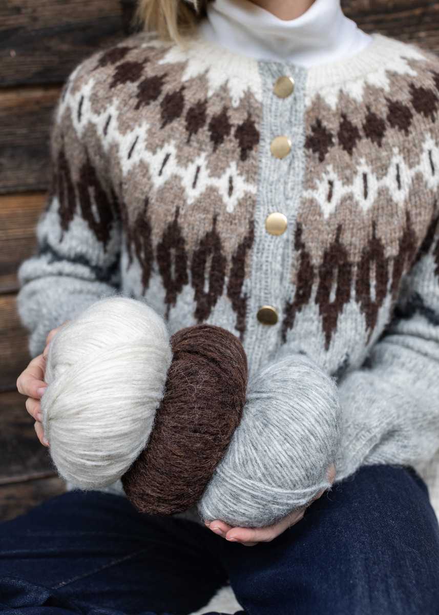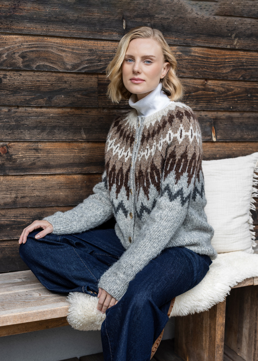 Der Cardigan wird in einem Stück von oben nach unten gestrickt. Er kann wahlweise klassisch (inklusive Blenden in einem Stück) oder als Steek Variante gestrickt werden. Dabei wird zunächst in Runden gestrickt. Am Ende werden die Ränder mit Kett-M gesichert, der Cardigan in der Mitte aufgeschnitten und die Blenden nachträglich quer angestrickt.