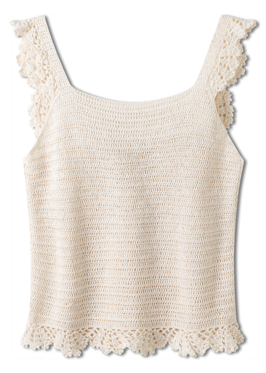 Lana Grossa-Qualität „Nastrino” (100 % Baumwolle, LL = ca. 190 m/50 g): ca. 200 g Creme (Fb. 2); 1 Wollhäkelnadel Nr. 3.