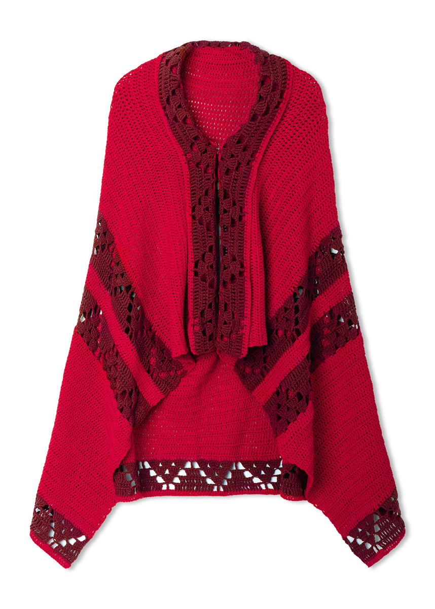 Filigrane Bordüren und zweierlei Rottöne bringen Spannung in die Oversize-Tunika. Gehäkelt wird quer aus ELASTICO.