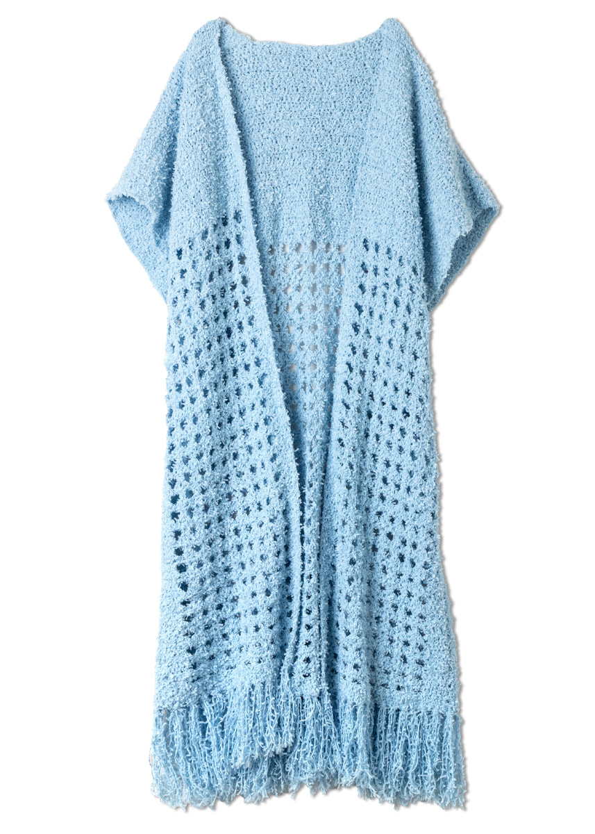 Für die himmlische WESTE – in der Mode „Chasuble“ genannt – haben wir etwas mehr Zeit eingeplant. Nicht wegen Muster oder Schnitt (einfach) und auch nicht wegen des Garns (Häkelnadel No. 4,5 und 5), sondern wegen ihrer