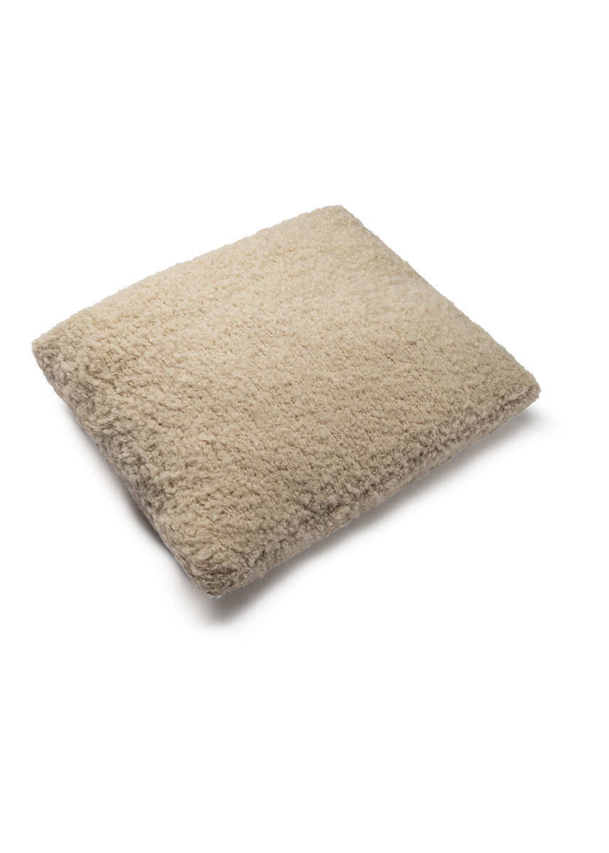 Lana Grossa-Qualität „Orsetto” (60 % Schurwolle (Merino), 40 % Alpaka (superfine), LL = ca. 75 m/50 g): je ca. 200 g Grège (Fb. 7) und Petrolgrün (Fb. 9); Stricknadeln Nr. 6; 2 waschbare Kissenfüllungen, 50 x 50 cm.