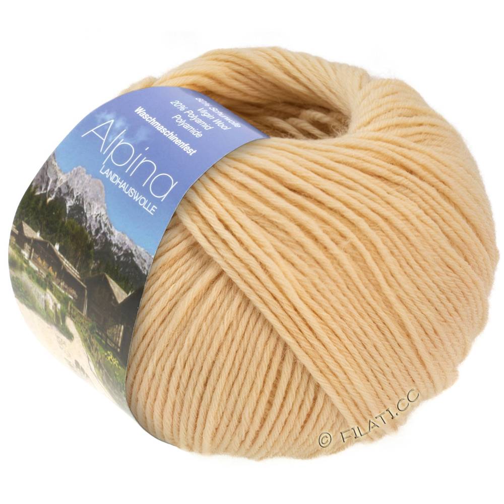 Alpina ist eine klassische Landhauswolle mit rustikalem Charme und natürlicher Ausstrahlung. Die robuste Mischung sorgt für ein angenehmes Tragegefühl, gute Wärmeisolierung und ein schönes, lebendiges Maschenbild mit feinen Tweednoppen.