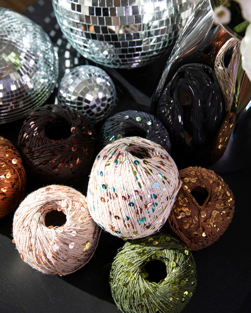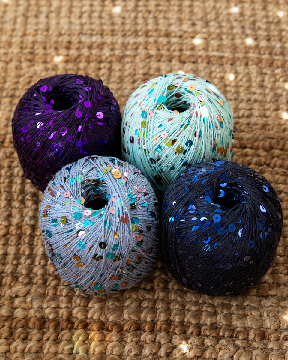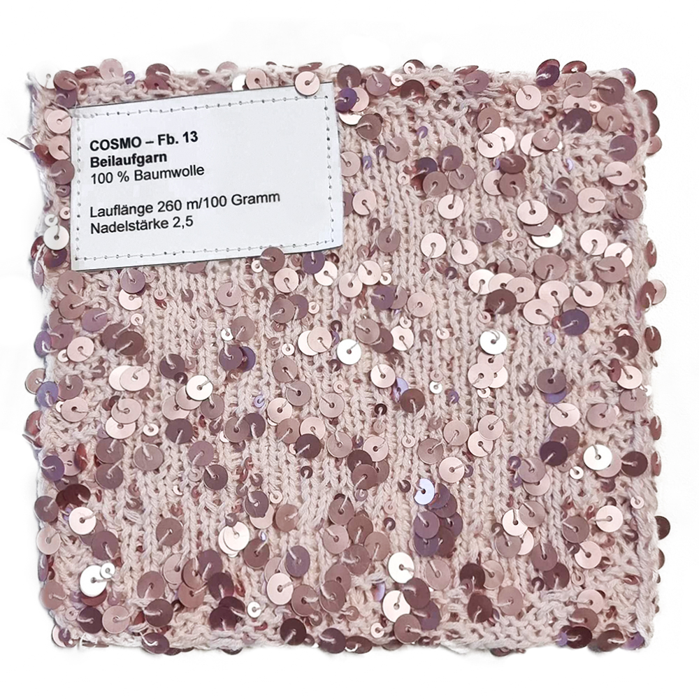 Beilaufgarn aus Baumwolle mit großen und kleinen Pailletten.