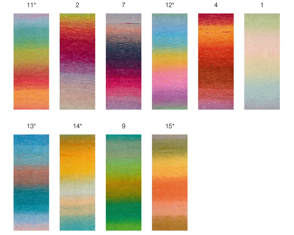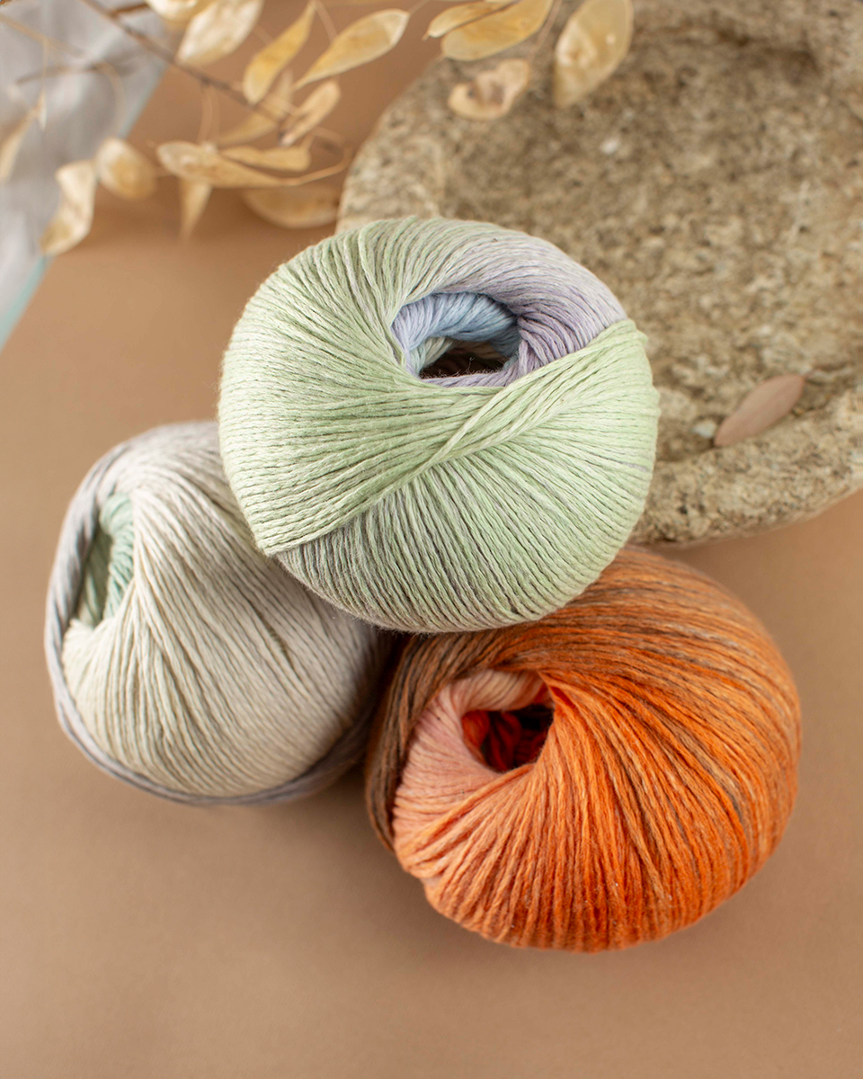 Cotonella ist ein weiches Sommergarn aus 100 % Baumwolle mit besonderem Charme: Durch den zarten Farbverlauf im Spray-Dye-Effekt entsteht beim Stricken ein lebendiges, leicht meliertes Maschenbild – ganz ohne Farbwechsel.