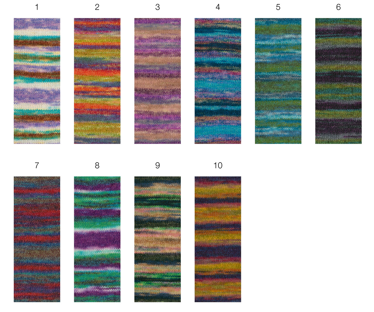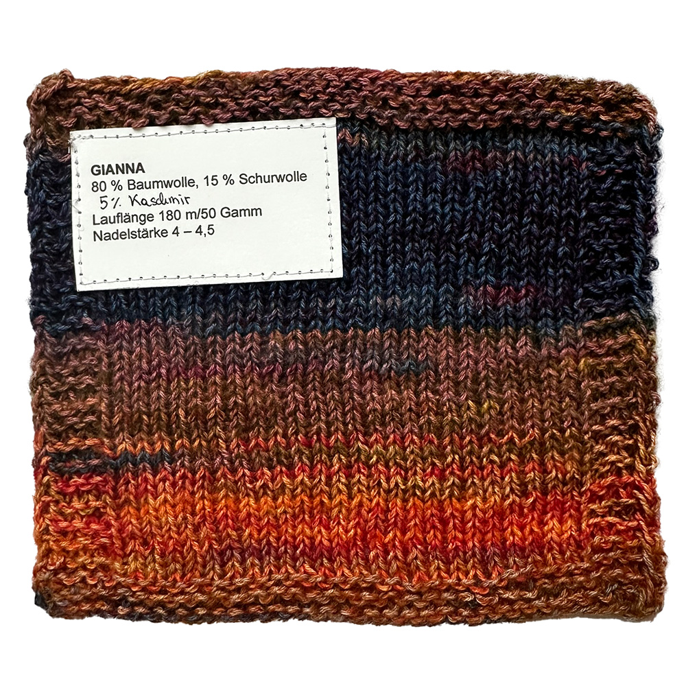 Gianna ist ein weiches, voluminöses Baumwollmischgarn mit strukturierter Oberfläche und effektvoller Bedruckung, die jedem Strickstück eine lebendige, moderne Optik verleiht.