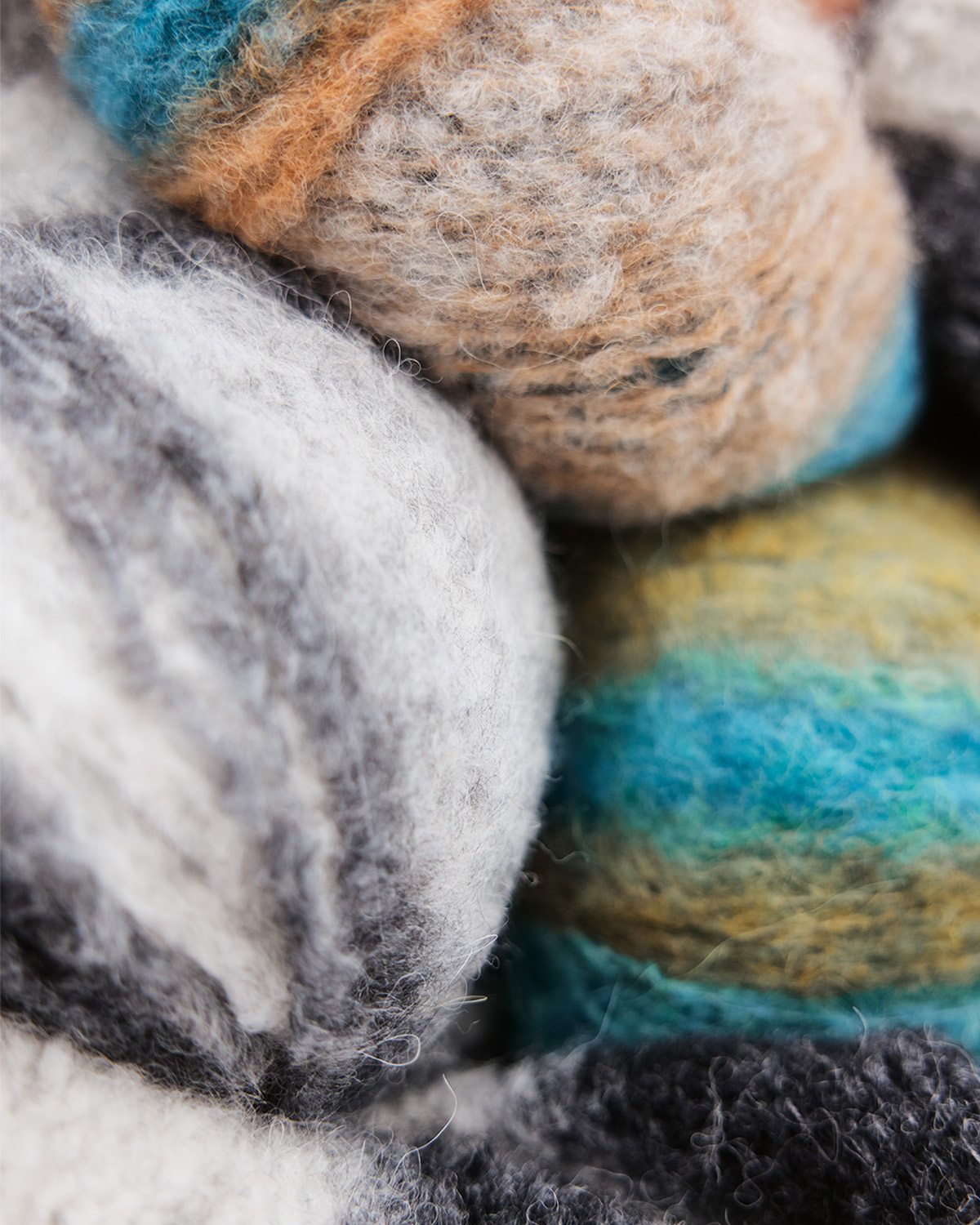 Voluminöses Alpakagarn mit Effektstruktur und Streifen im Farbverlauf.