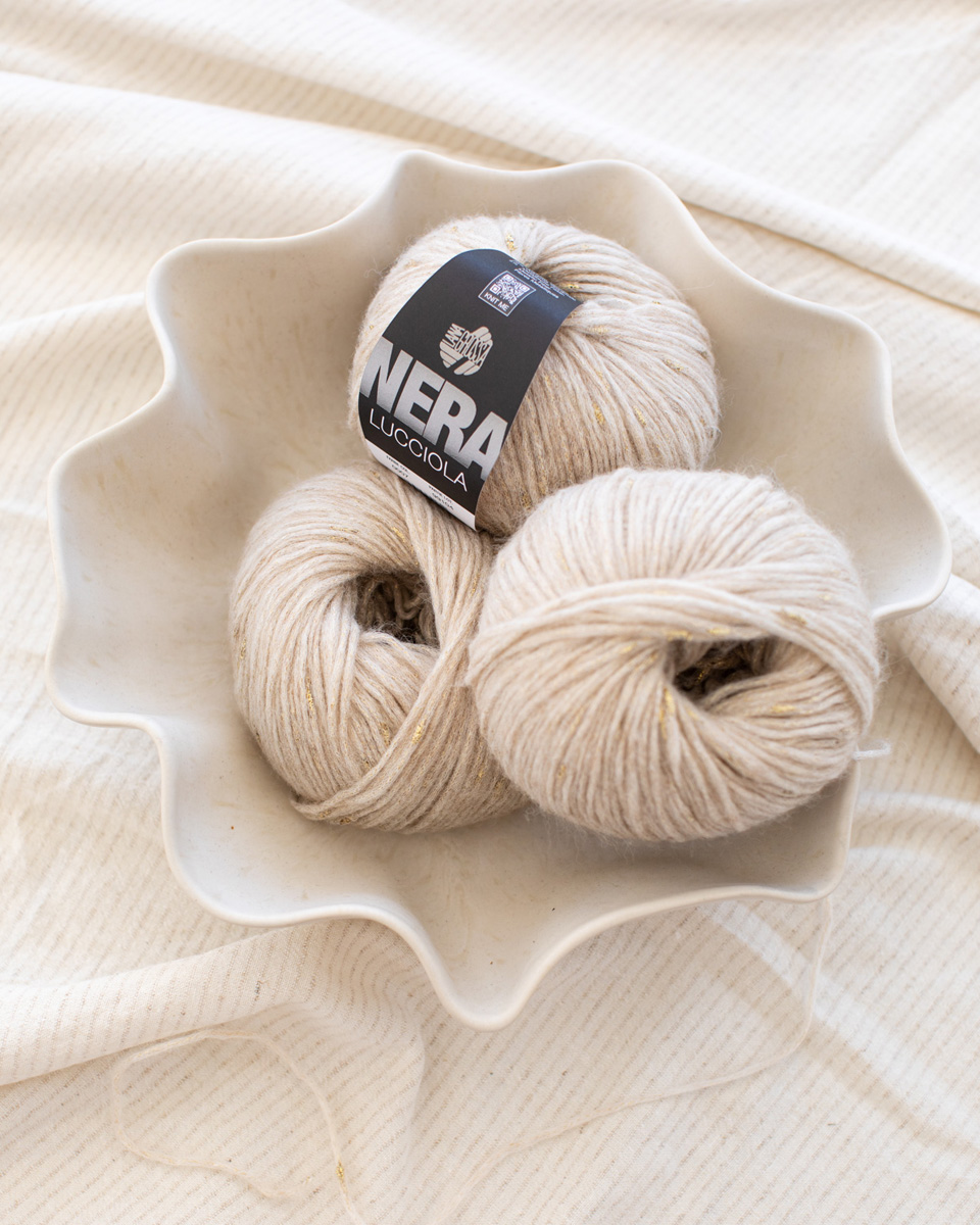 Lana Grossa Lucciola ist ein feines, glitzerndes Garn, das jedem Strickprojekt eine elegante Note verleiht. Durch den zarten Glanzfaden entstehen lebendige Effekte, die besonders bei Schals, Tüchern oder festlichen Oberteilen zur Geltung kommen. Leicht und angenehm zu verarbeiten – perfekt für moderne, edle Maschenlooks mit einem Hauch Glamour.