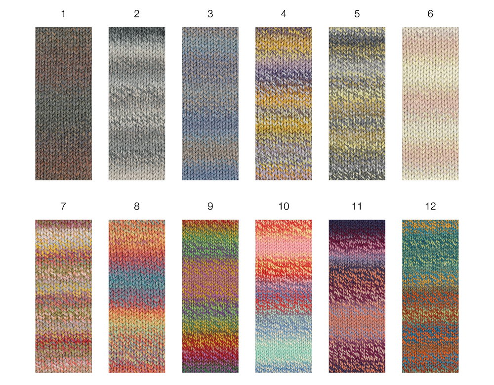 3-fach verzwirntes Dochtgarn aus Merino und im Einzelfaden bedrucktem Farbverlauf.